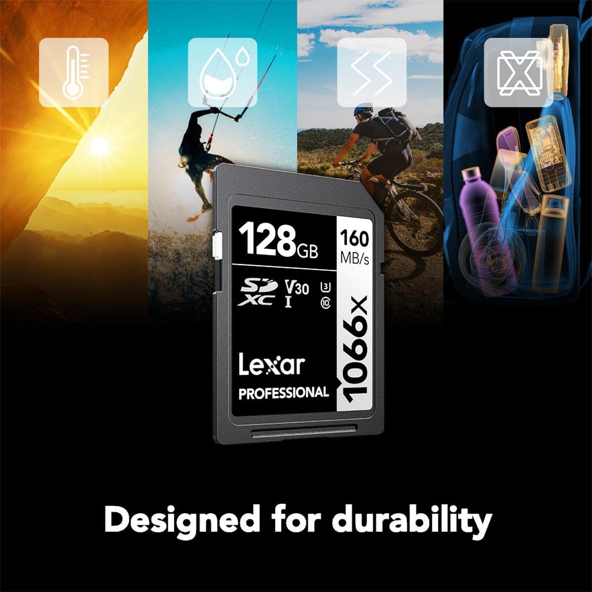 Lexar 128GB Professional 1066x SDXC Memory Card, UHS-I, C10, U3, V30, Full-HD & 4K Video, Up To 160MB/s Read, for DSLR and Mirrorless Cameras (LSD1066128G-BNNNU)